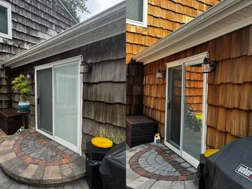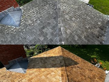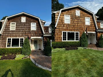 Our Cedar Shake Wash service uses an environmentally safe, oxi-style cleaning solution designed to effectively remove algae, mold, and other organic buildup from the surface of your cedar shakes or shingles. This gentle yet powerful treatment restores the natural beauty of your wood while preserving its integrity, leaving it clean, refreshed, and protected against future growth.